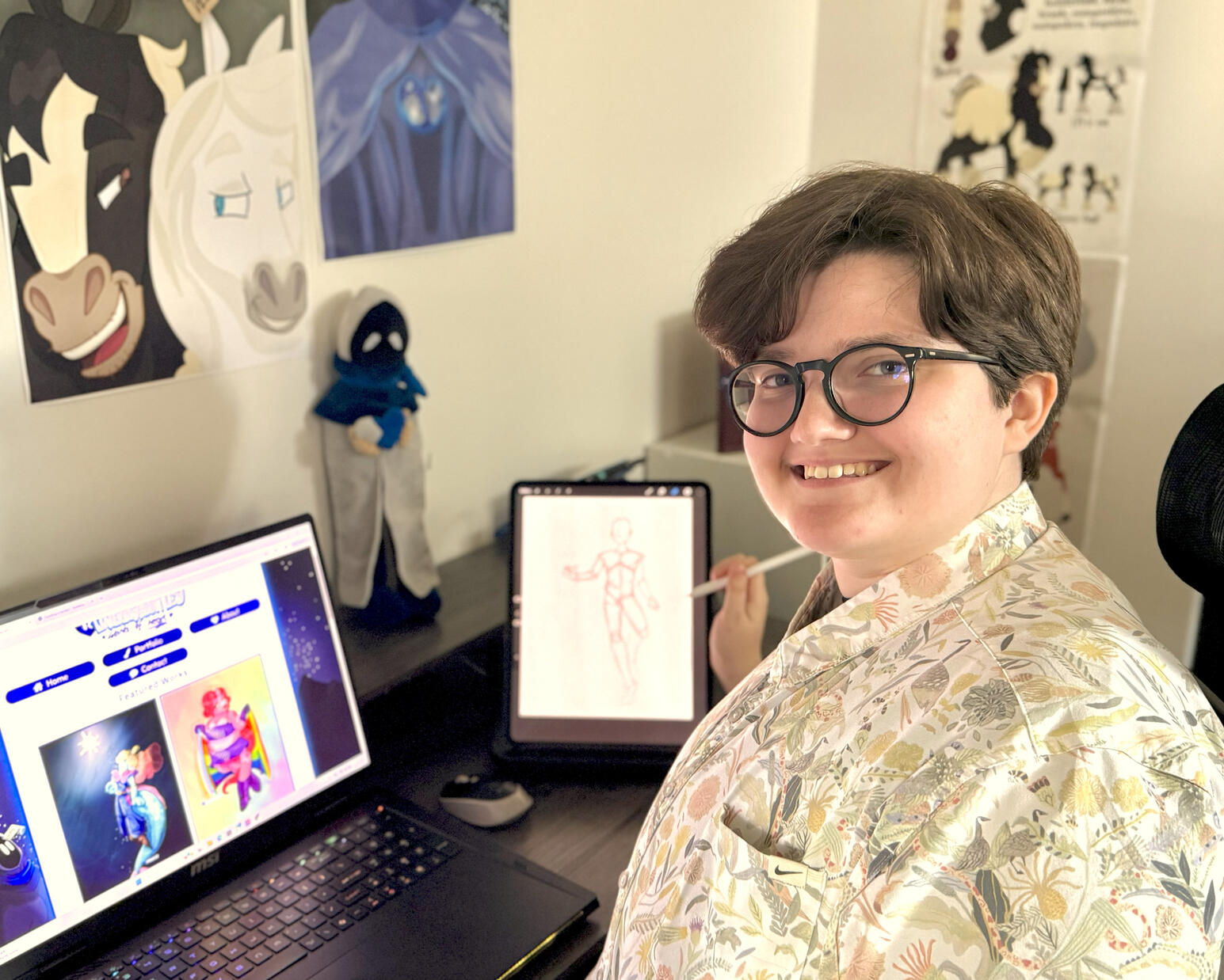 Albany Hartley Case is a Portland-based artist, illustrator, and character designer. He focuses his brand around “works of heart”, treasuring his passion for his craft and channeling childlike wonder and whimsy into his characters as the ultimate form of healing self-expression for his always-active mind. He enjoys telling the stories he wasn't able to growing up, using his experiences as a queer, autistic person to create media that will be there for people the same way it was there for his younger self.