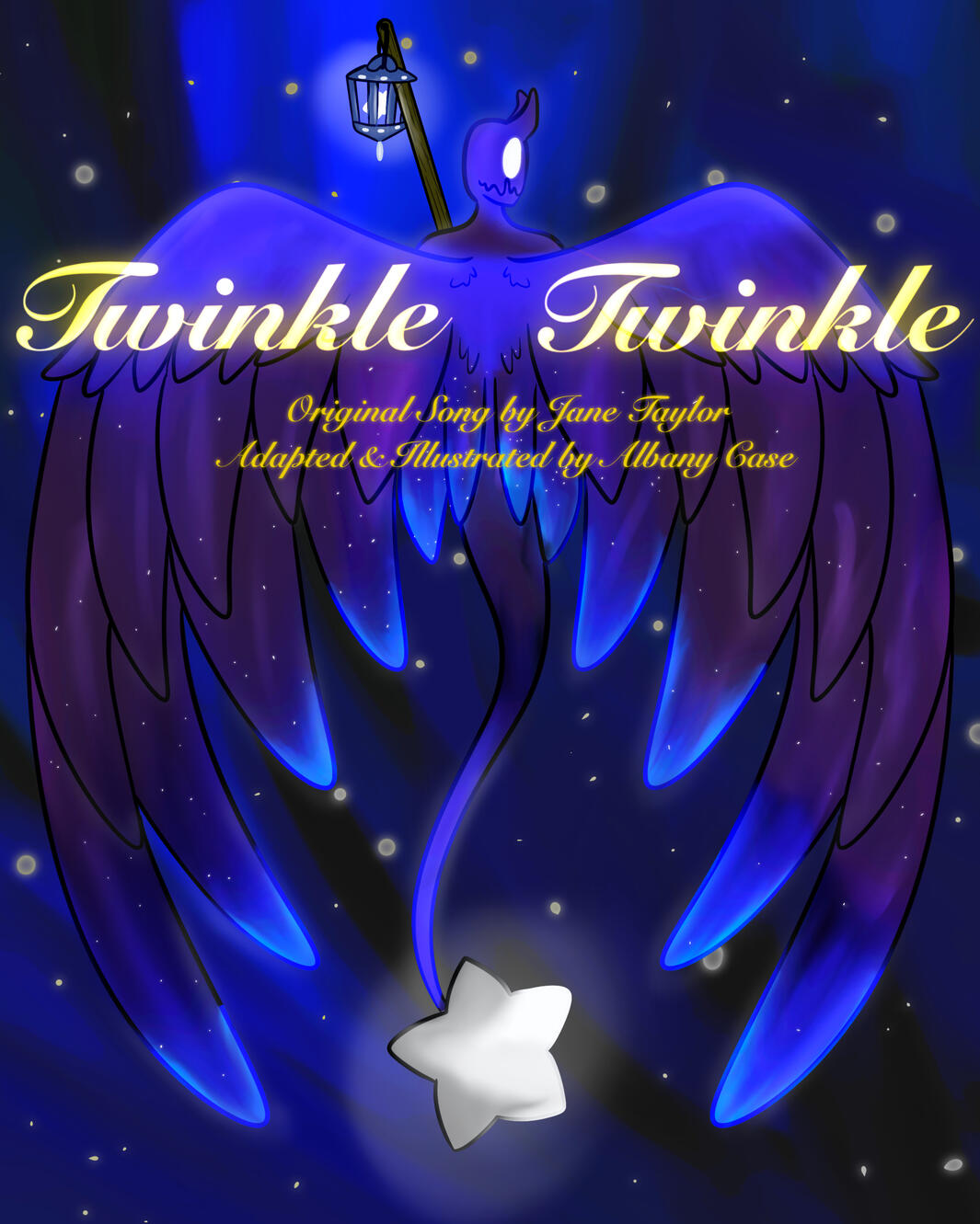 Created in PNCA's Picture Book 1 course, taught by David Hohn, "Twinkle, Twinkle" was an experimental exploration by Albany "LoverboyHartley" Case into the world of picture book illustration. Adapted from the famous nursery song "Twinkle, Twinkle, Little Star", this 28 page book tells the quiet story of a lonely individual setting out at night to contemplate taking their own life, when the personification of a twinkling star comes down from the sky to guide them back home. Albany wrote from a personal perspective when it came to his own experience with self-destructive intrusive thoughts and finding the hope it takes to keep living.Creating the book dummy was a hard lesson to learn for Albany, who was struggling managing a heavy school load at the time from other classes, but the project became a point of pride later on, for creating something entirely out of his wheelhouse from the ground up and managing stressors and the feedback of his instructor. Though the book itself had a fraught production, Albany finds it taught him a lot about being an illustrator, not just for picture books, and exists as an example of the rapid growth he experienced between his last two years at PNCA.