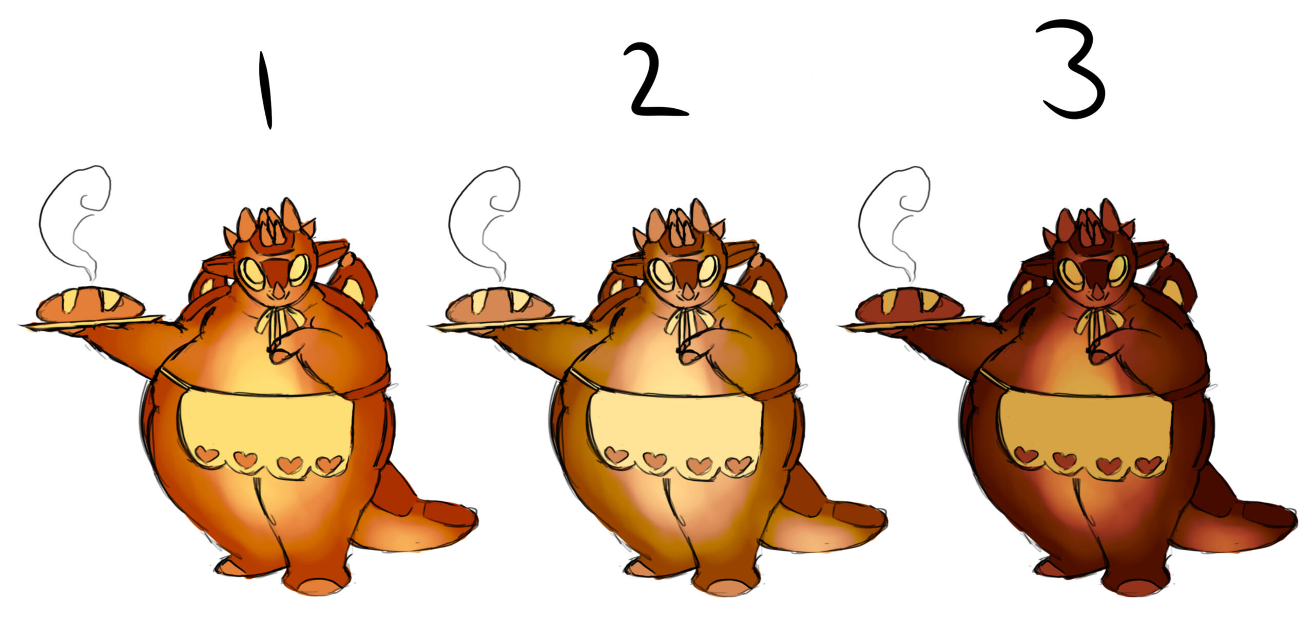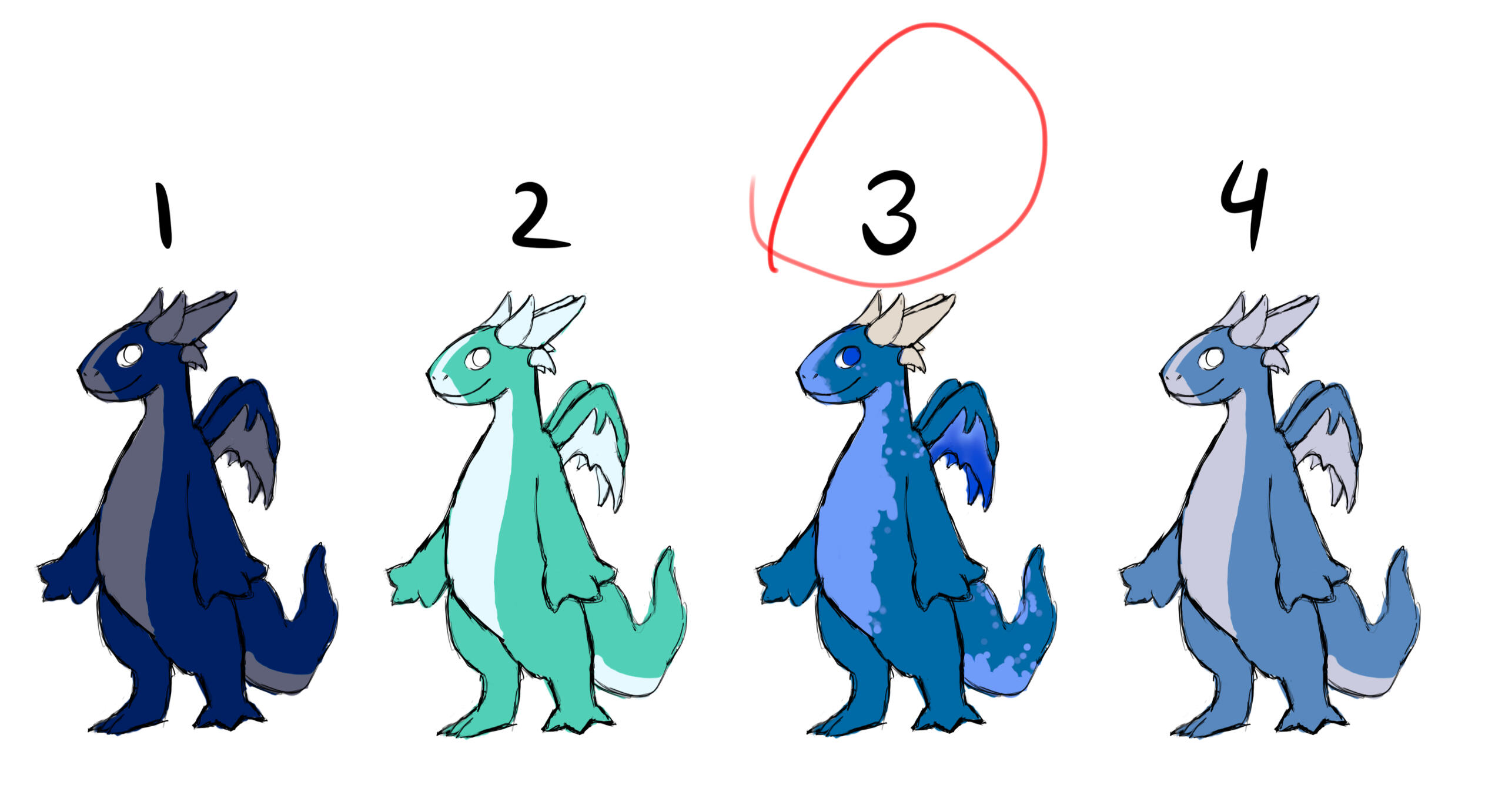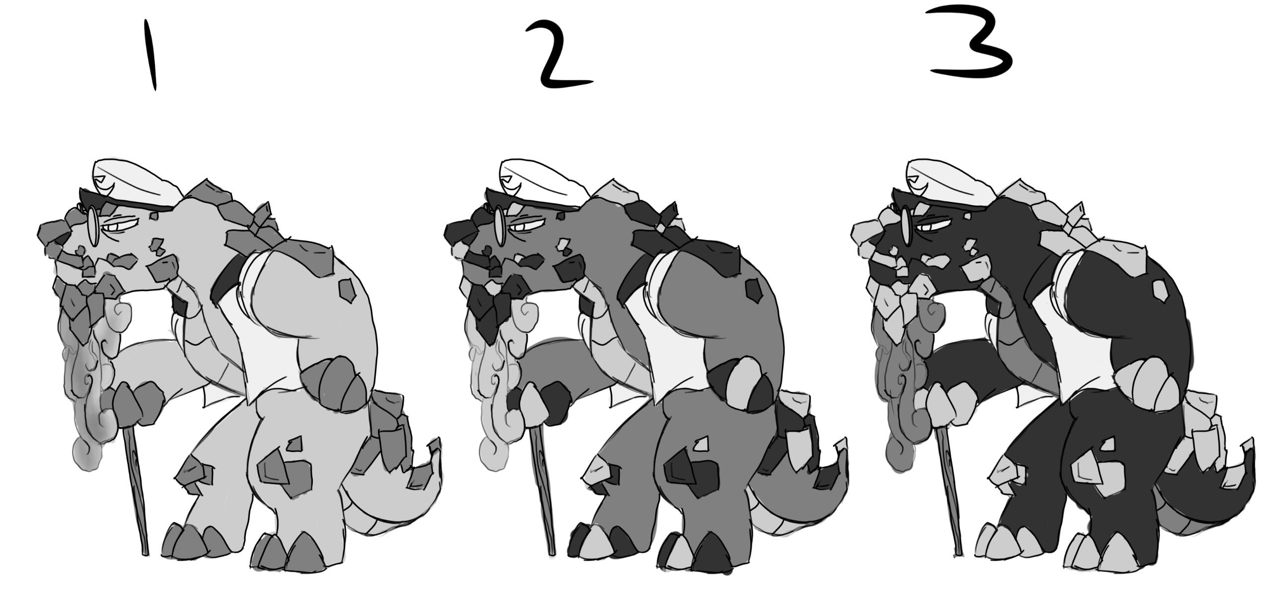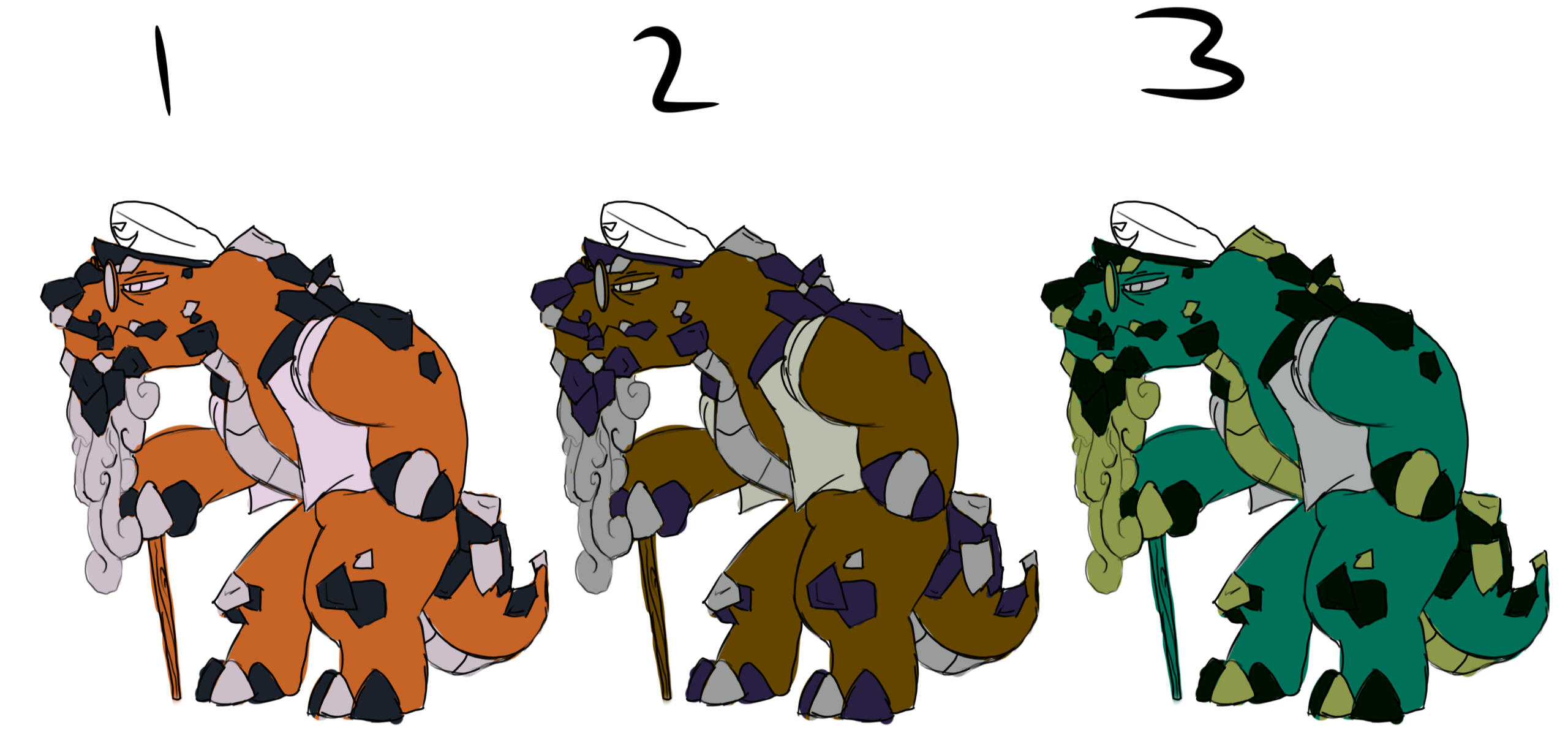 Second protagonist color comp. Team collectively added patterns to 3 after deciding on it during a meeting.
