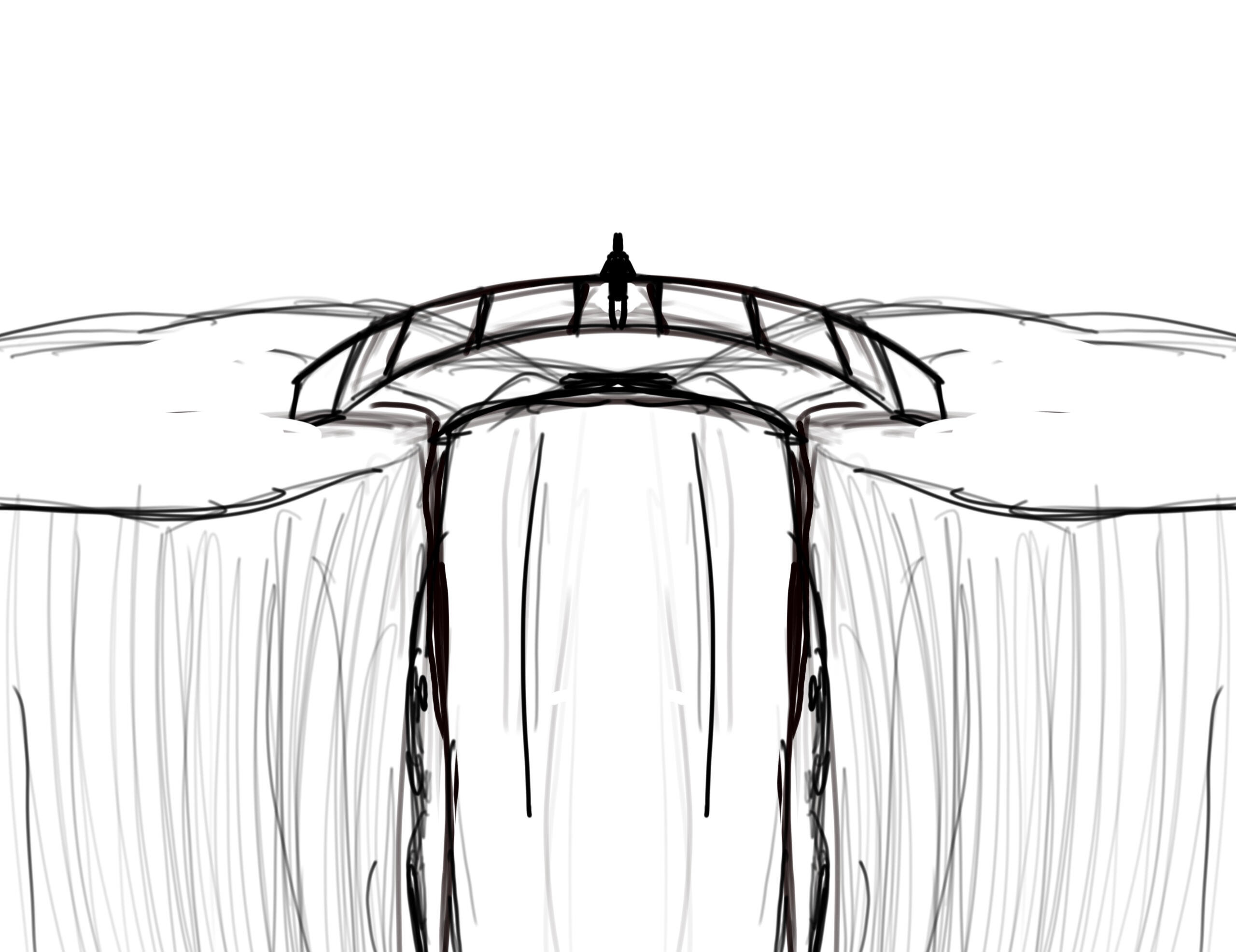 Rough sketch of pages 11-12. This illustration concept was later scrapped entirely.