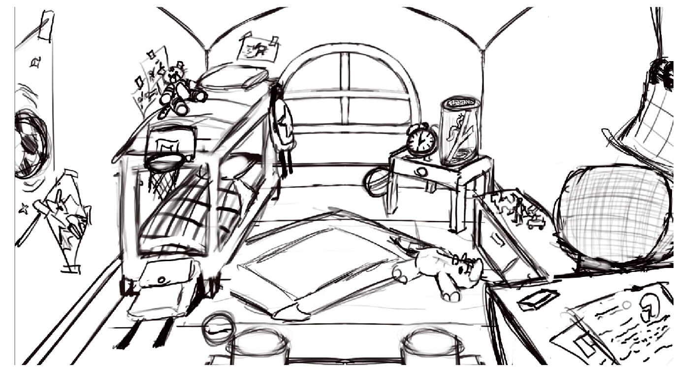 Early illustration created to demonstrate concept, before characters were formally designed.