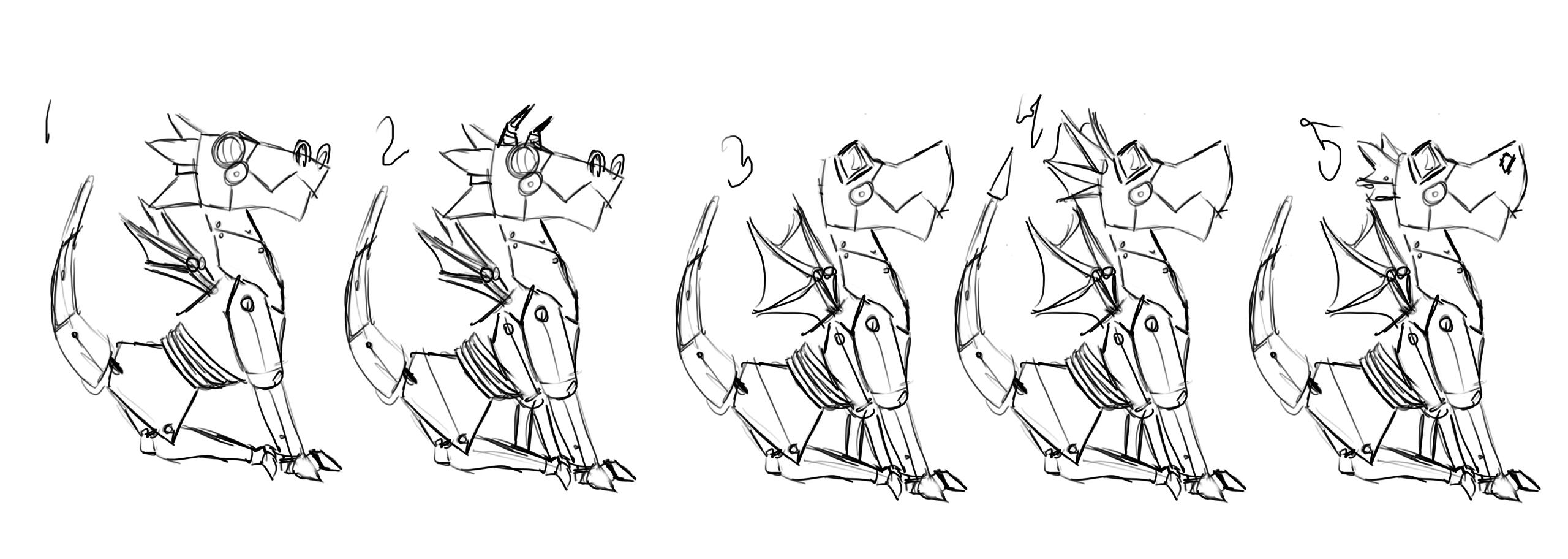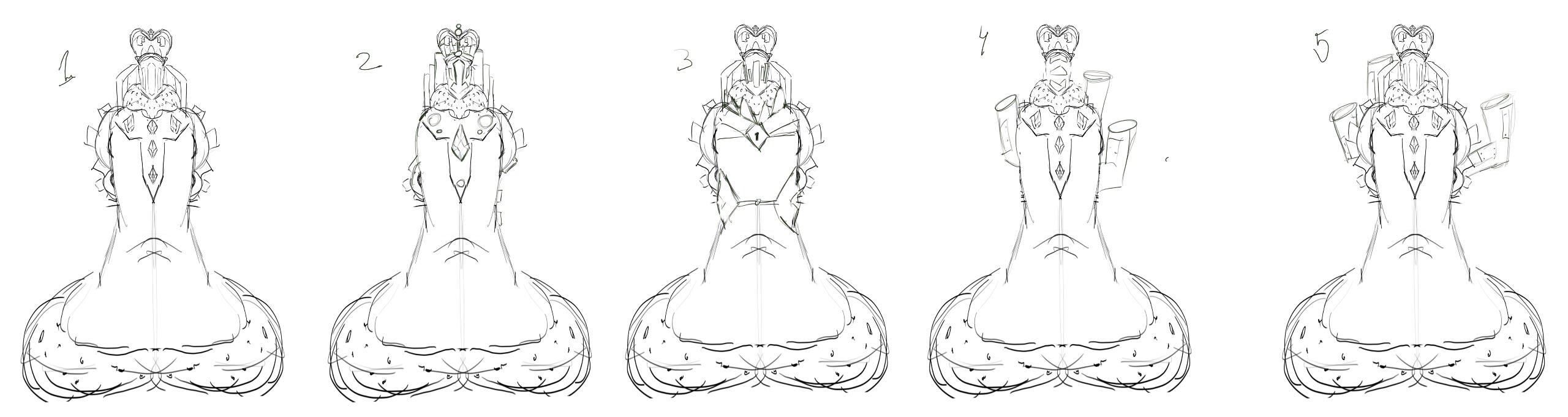 The Clockkeeper, ideation. Design 2 was chosen and lightly modified, combined with design 1.
