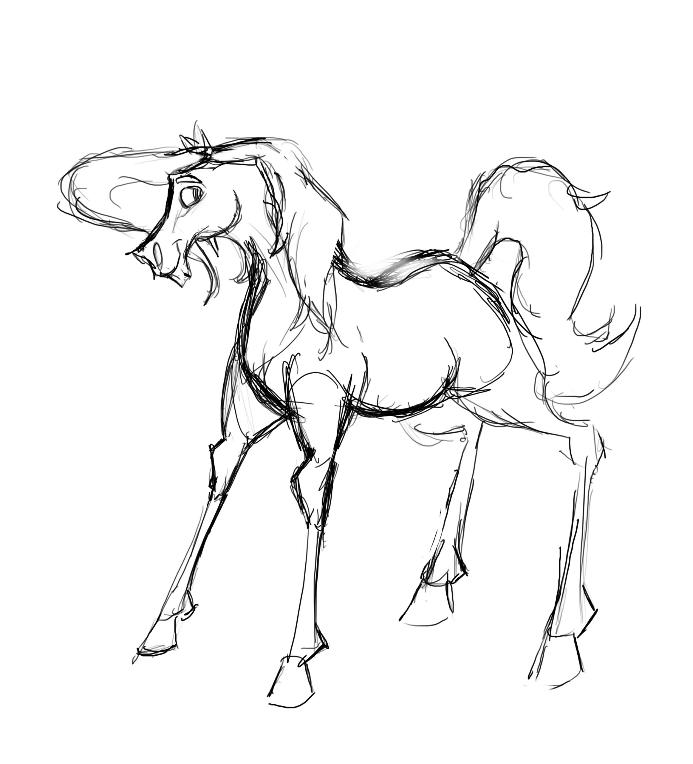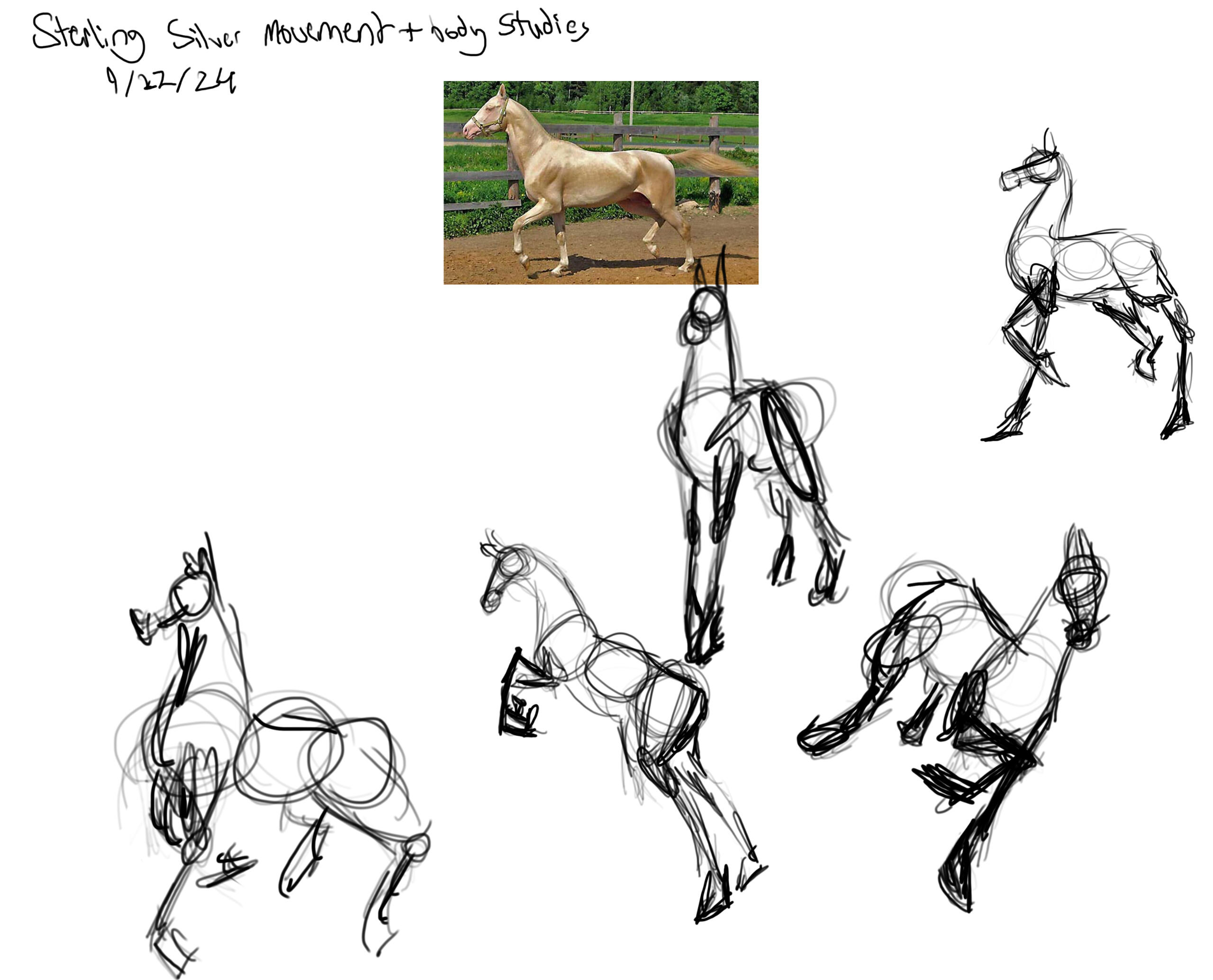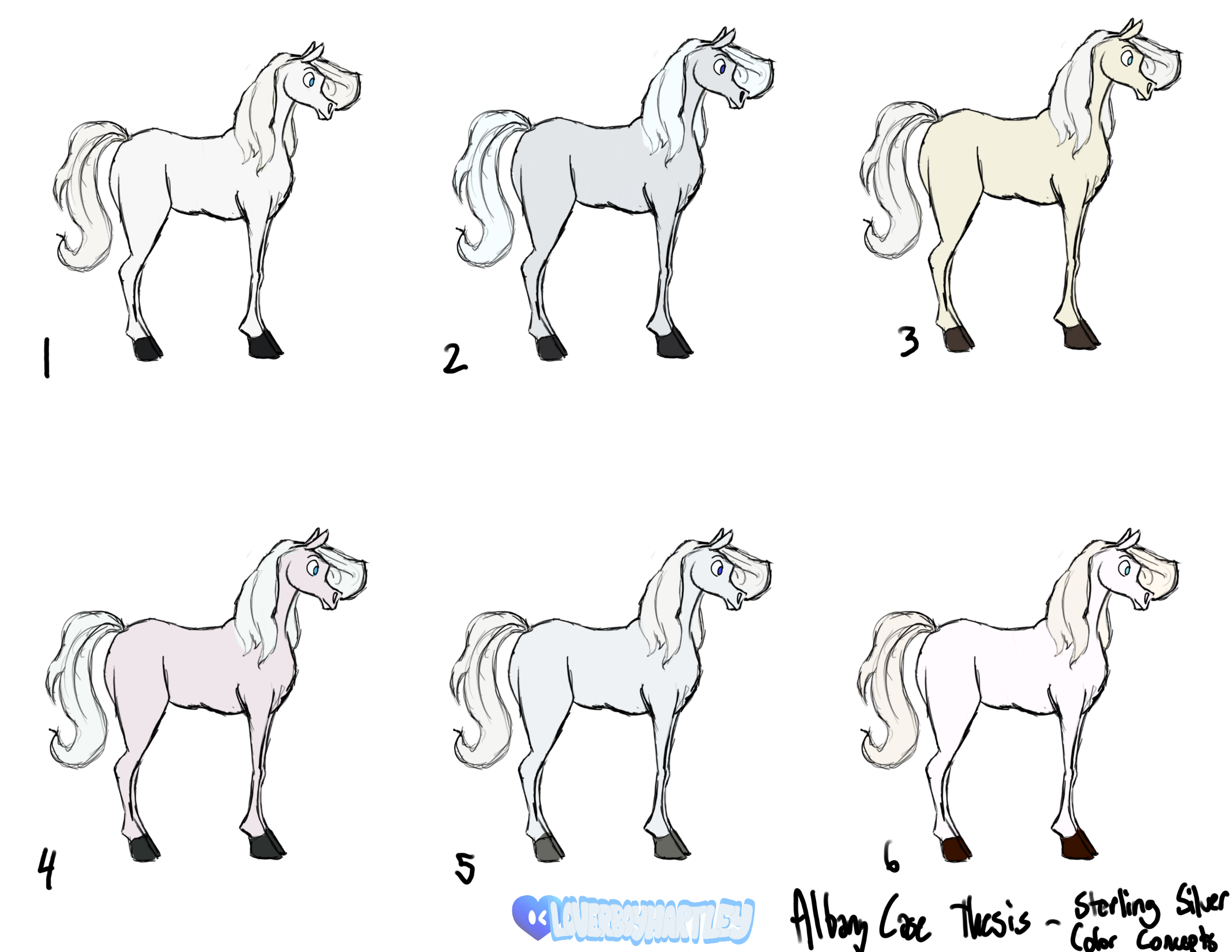 When it came to his thesis year at PNCA, Albany "LoverboyHartley" Case had to demonstrate everything he'd learned and had too many ideas and messages to do it with. In the latter part of his third year, though, he became very interested in horses, and chose to use that new interest as inspiration for his thesis, which he had already wanted to be an authentic queer narrative. This would take the form of a pitch bible for a hypothetical animated film which aimed to tell a positive queer story with a happy ending, directed at a general audience. This queer story would be accessible to all ages and had the goal of trying to remove queer stories from a label of being "adult content". With this, the foundation was laid, and Albany would combine his newfound appreciation for horses, his desire to tell unapologetic stories of men who love men, and his background living in the country to create Off the Bit.Albany mentored under illustrator Zach Meyer and proposed a pitch bible containing three character designs and reference sheets, the script for one scene, three backgrounds, a logo, sticker merchandise, an illustrated scene, miscellaneous illustrations and all the concept art that came with the project. The project was presented in its finished form in the spring of 2025 after almost two years of production and Albany considers it one of if not the strongest example of his capabilities as an artist and designer.