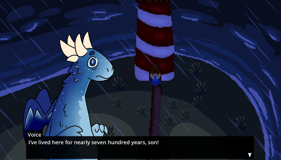 Created by roommates Mya Katz, Sean Semick, and Albany "LoverboyHartley" Case for Brackey's Game Jam 2024.2 (an event centered around producing a game in a week's time), A Wish Over Eventide is a short visual novel which takes roughly 15 minutes to complete. The game centers around the protagonist, a burnt-out young adult, having a wish they made on a star granted to become the hero of their own magical adventure. The only problem? They made that wish when they were five and their sensibilities have changed a lot since then.The object of the game is to travel around the mostly-evacuated Eventide Town and persuade three colorful dragon residents to leave their homes behind before their town is wiped off the map by a coastal storm. The game has a charming, lighthearted and often comedic tone, punctuated with heartfelt character moments and lively, cartoonish visuals.